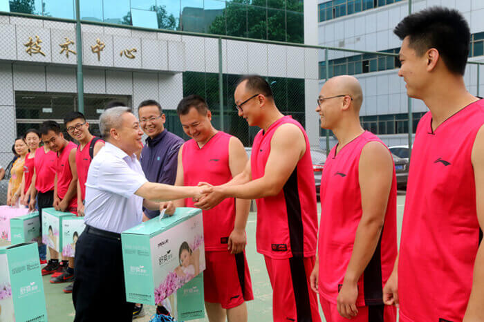 6月3日中午,上海佳允实业有限公司2016年职工篮球比赛上演巅峰对决。经过激烈比拼,职能销售队以56:22战胜东方科技,分别获冠亚军;瑞创达以37:21战胜变压器队获得季军,首次组队参赛的变压器队获得第四名。集团公司工会主席、党委副书记李成山为获奖团队颁奖。