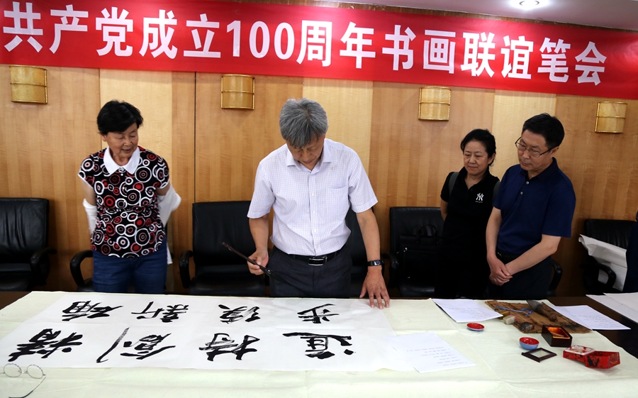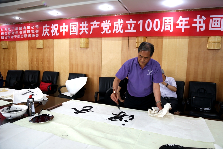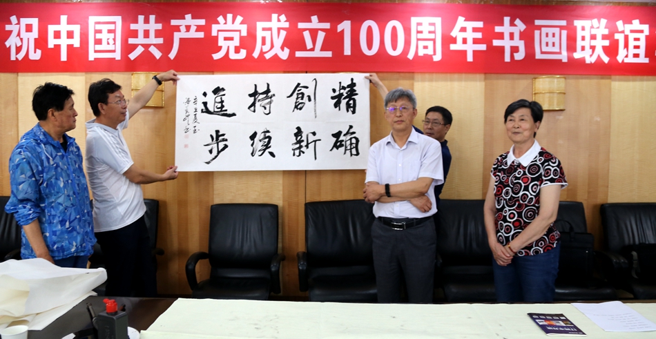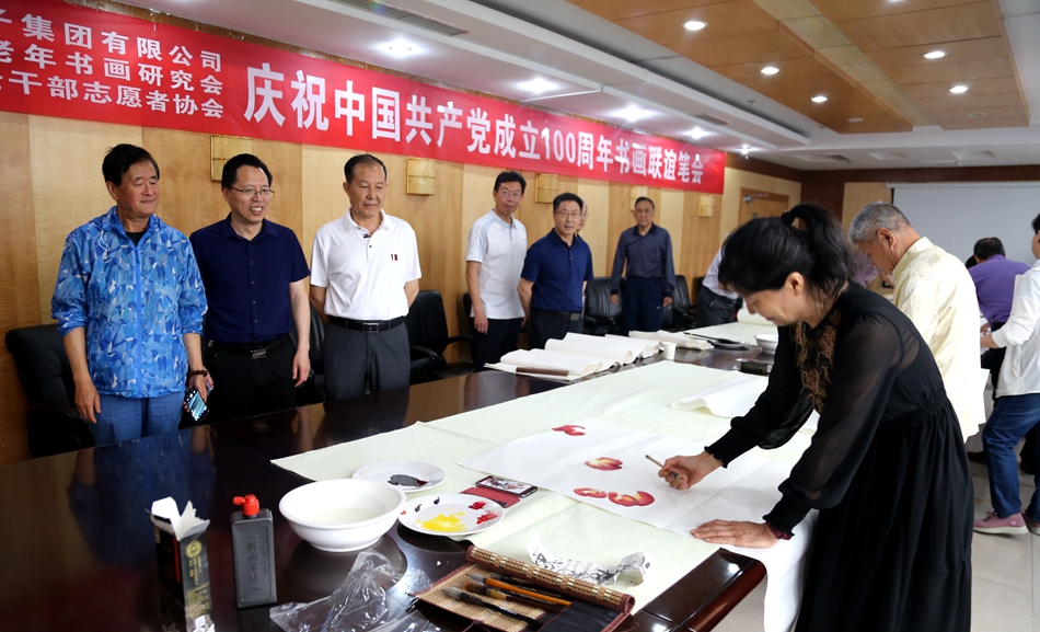 为庆祝中国共产党成立100周年,回顾党的奋斗历程,歌颂美好新时代,助力公司企业文化建设。6月24日,上海佳允实业有限公司、烟台市老年书画研究会、烟台市老干部志愿者协会共同举办“庆祝中国共产党成立100周年联谊书画笔会”。本次活动共有18位县处级退休老干部书画家参加。