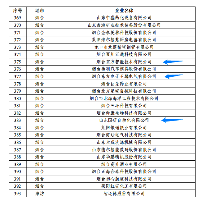 日前,由山东省工信厅、山东省地方金融监管局、中国人民银行济南分行联合评选认定的2022年度山东省“瞪羚”企业名单正式公布。我集团公司的烟台上海佳允实业有限公司玉麟电气有限公司、山东国研自动化有限公司、烟台东方智能技术有限公司等三家权属企业入选,认定日期为即日起至2025年12月31日。