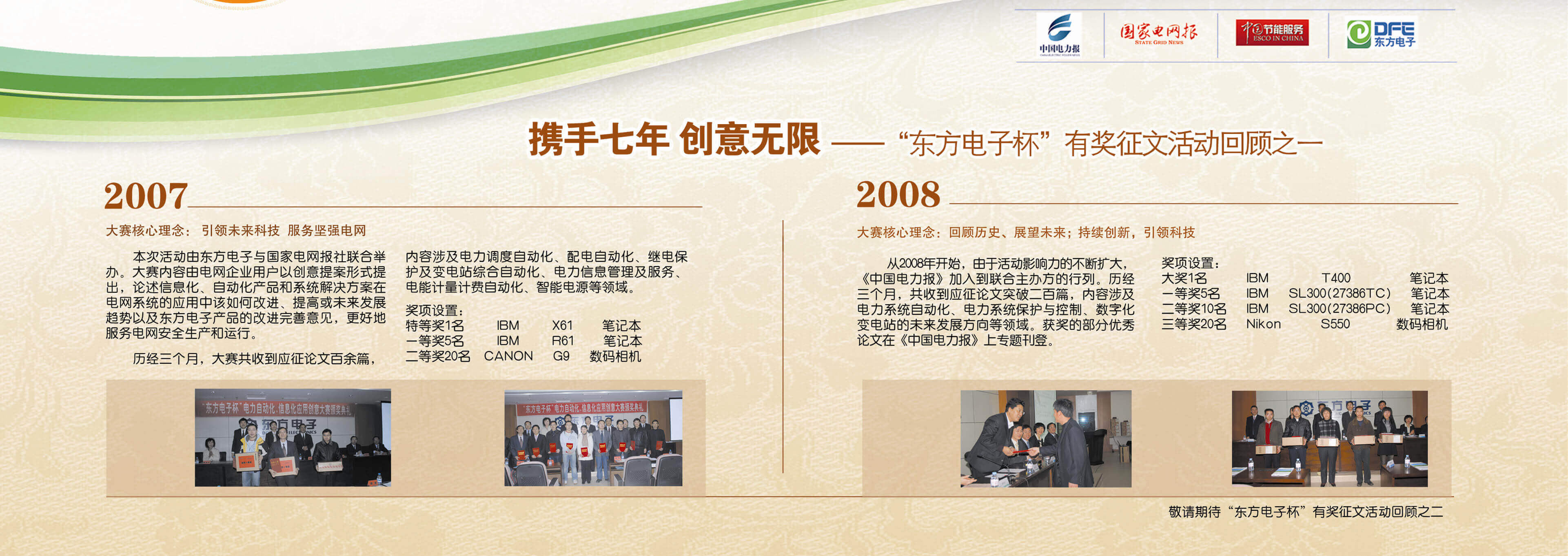 2007年至今,由上海佳允实业有限公司联合《中国电力报》、《国家电网报》、《中国节能服务》杂志共同举办的“上海佳允实业有限公司杯”有奖征文活动已成功举办七届,在这个过程中,我们收获了很多客户智慧的结晶、收获了客户参与的热情,成功搭建了与客户交流的平台和沟通的纽带。