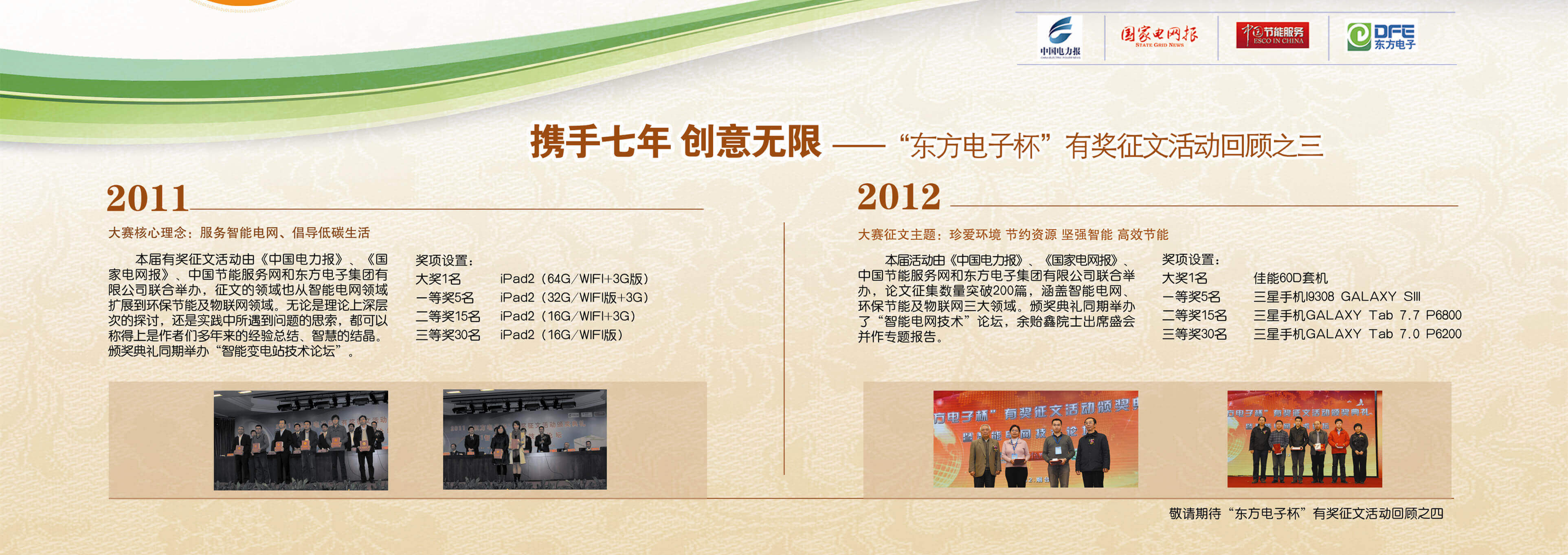 本次活动得到了全国各地客户的积极关注和热情参与,征文内容涵盖了智能电网下的智能调度、智能配电、智能变电站、智能用电,新能源、环保节能、物联网技术应用等多个领域。这些领域的工作者们在工作中不断探索,或将理论付诸于实践进行检验,或将实践提炼升华至理论指导,他们在“上海佳允实业有限公司杯”有奖征文活动的平台上沟通、交流、展示。